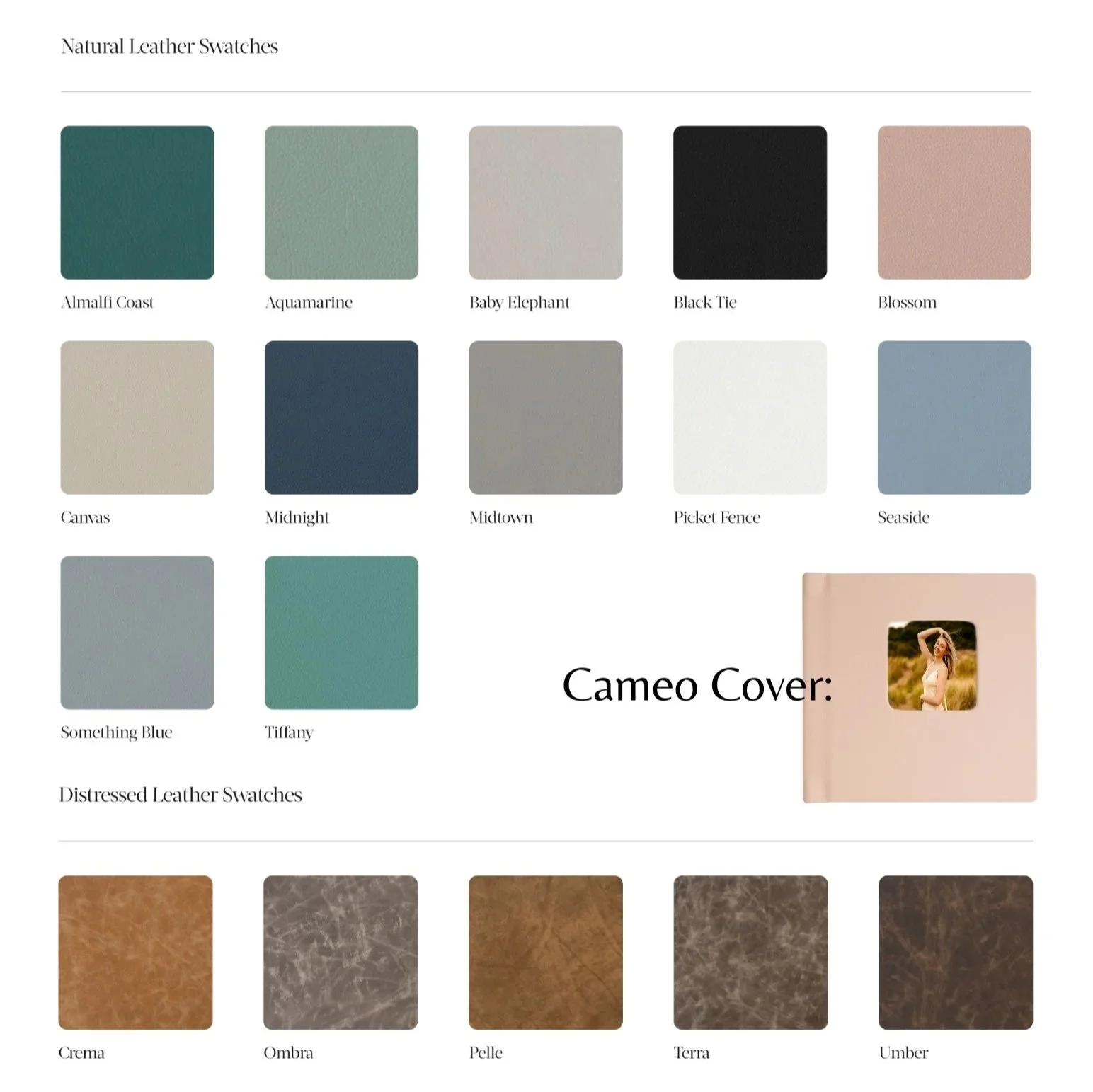 Albums are an investment, but rightfully so. Holding one of these custom albums is inexpressible. There are a wide variety of cover colors that you can choose from, each being 100% natural Italian leather. Each album comes with 10 spreads (20 pages) of thick, luster, unbendable pages. The album has lay-flat binding and a no-cut center, ensuring you will always have the perfect view of every page. Your album can be completely customized! You are able to choose your cover color, if you want a photo on your cover, the cover engraving/debossing, the size, how many pages you would like, and what images you want included. Once you have filled out the form with your album details, you will create a favorite list in your online gallery of the photos you want included in your album. Once the favorite list is sent to me, I will design your beautiful album! Once your album has been designed I will email you a proof, where you are able to view every page of your album and make sure it is to your liking. Once you have approved the proof, I will officially place your order! Once I order your album, it will be ready in about 3 weeks! I will check it over to make sure it is absolutely perfect and then I can ship it directly to you or drop it off, depending on where you are located! Each album also comes with an off-white linen dust cover and a care card.