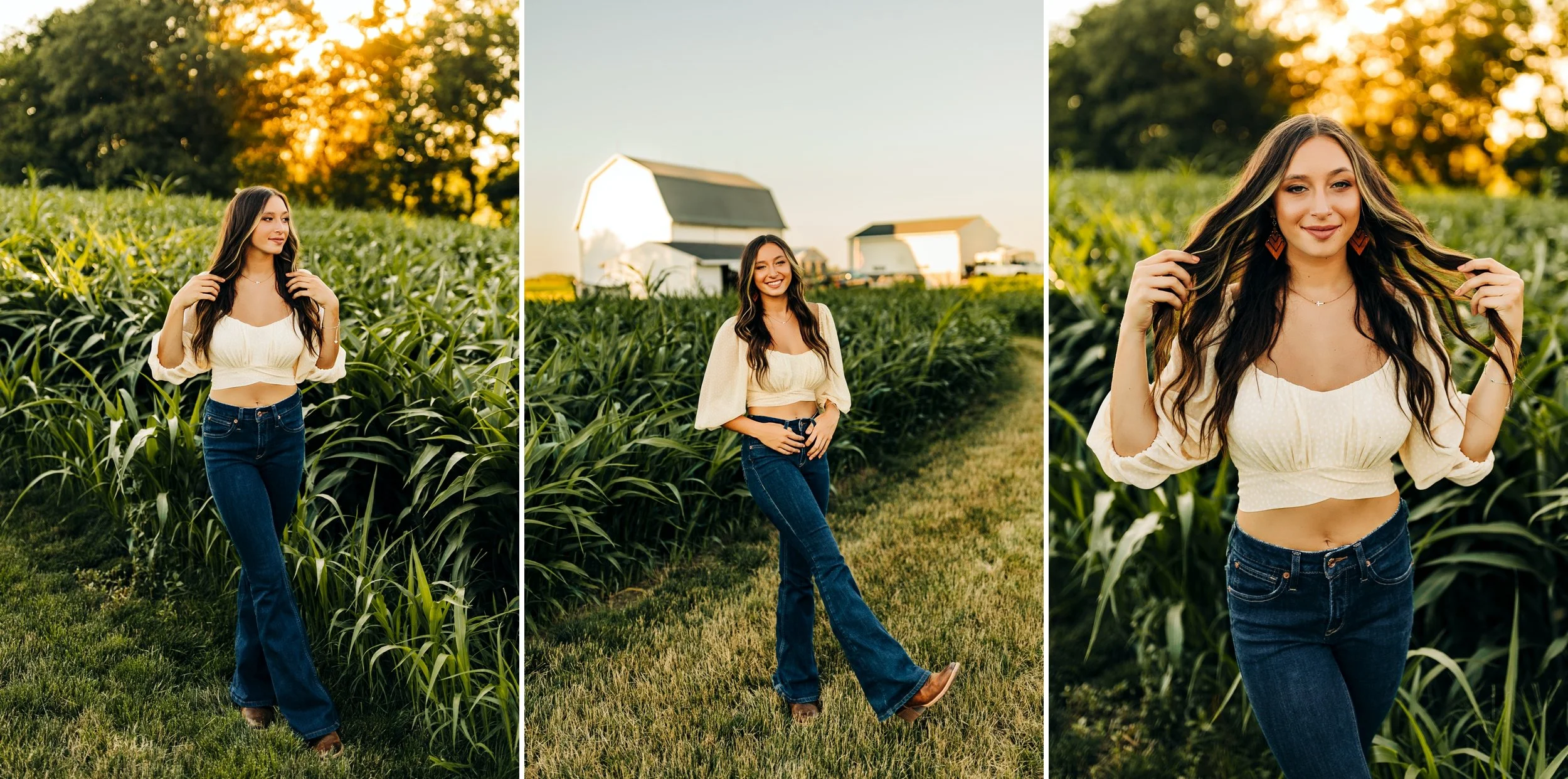 Ava’s senior photos were SO much fun last summer!! When Ava first inquired with me, she mentioned that she LOVES cows and would love to incorporate them in her senior pictures somehow! I was so so excited because I love cows too and I just knew the pictures would be adorable!! I was able to bring Ava and her mom to my relative’s farm and we made some magic happen!