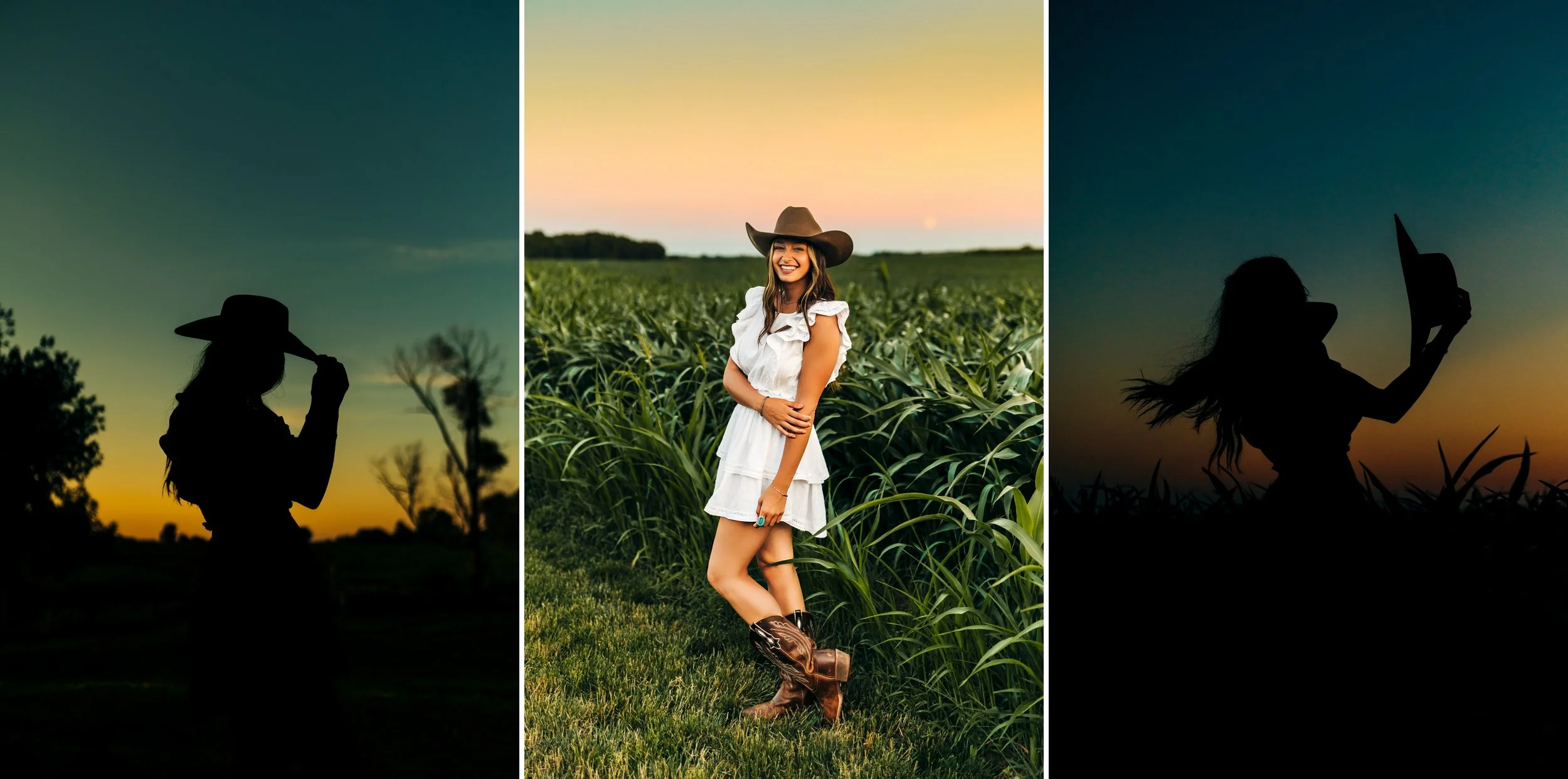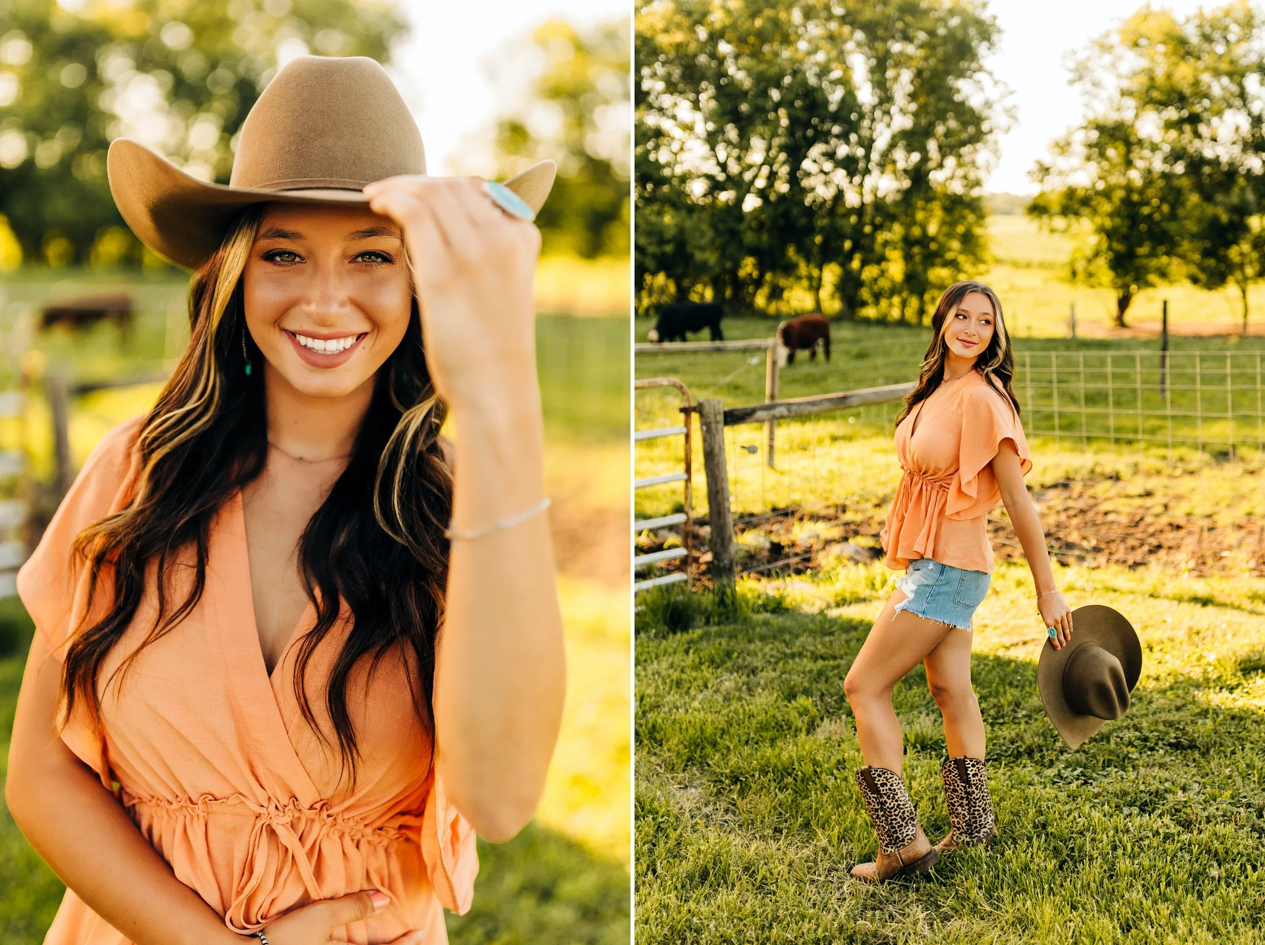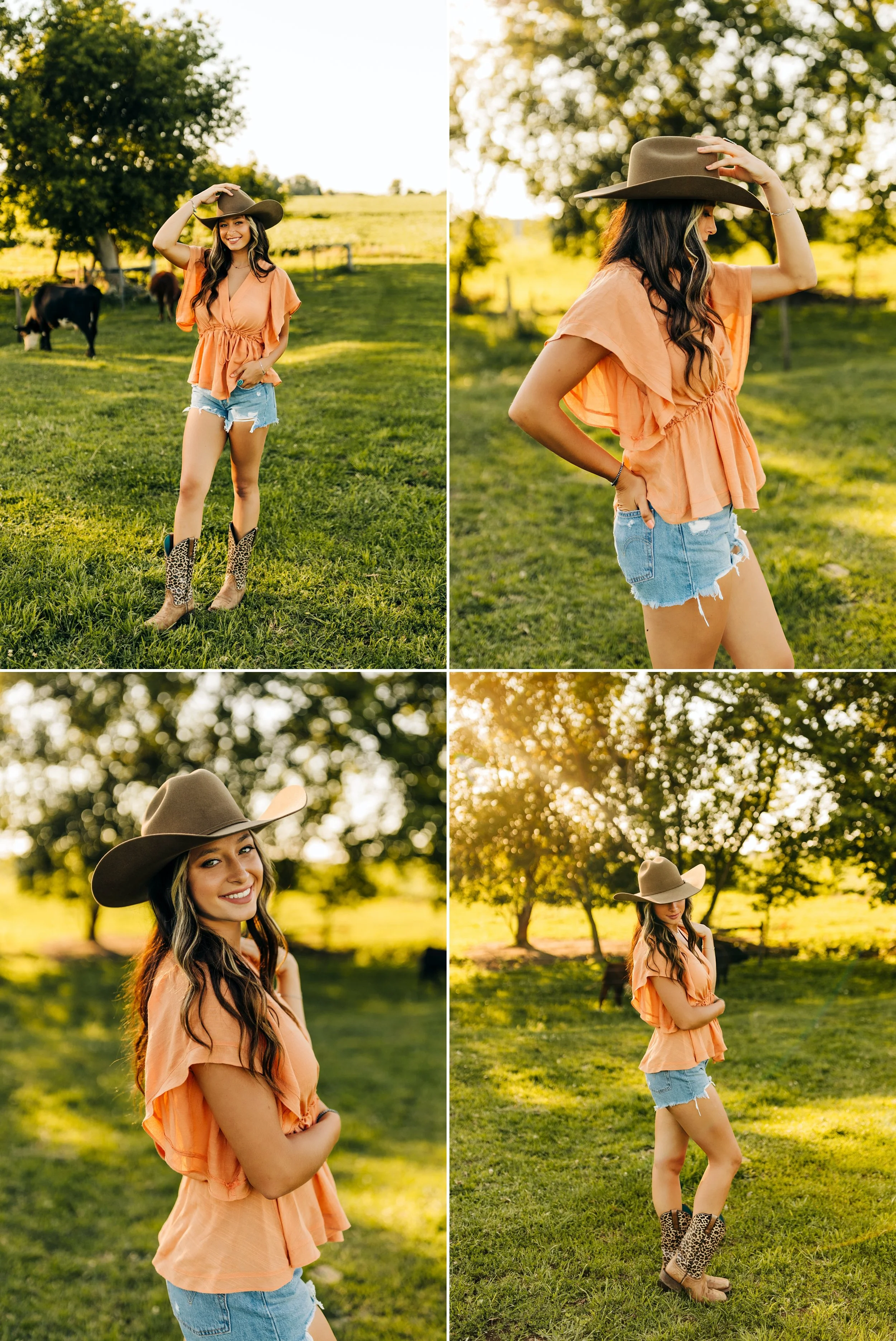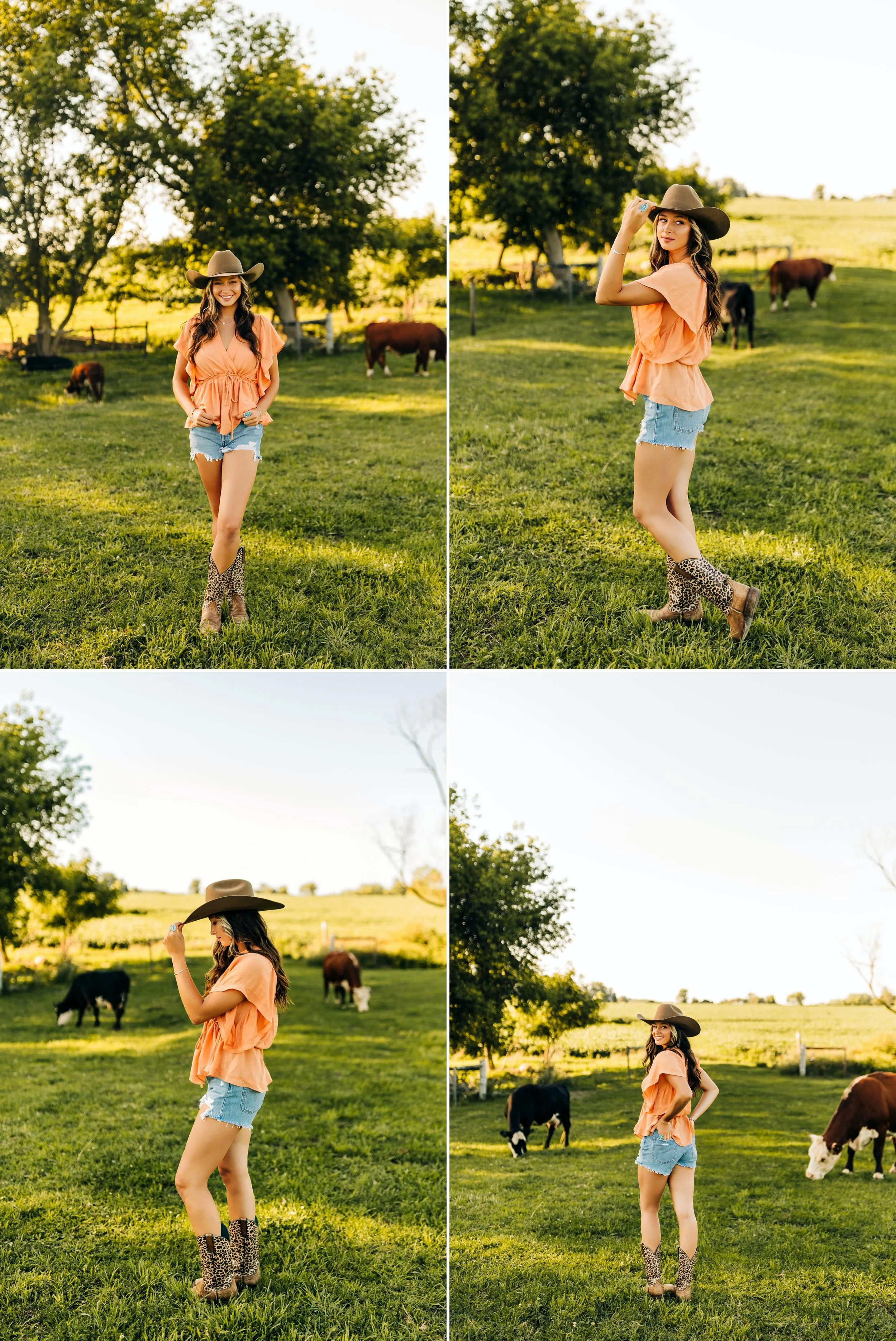 Then, we headed for the farm which was my favorite part of her session!! Her adorable cowboy boots, the white dress, and her cowboy hat were absolute perfection in the cow pasture! The cows were super interested in us and watched us the entire time, they were so funny! Everything fell into place so beautifully and we had a picture perfect golden hour.